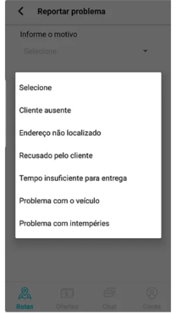 1. Informe o motivo (selecionar uma opção):