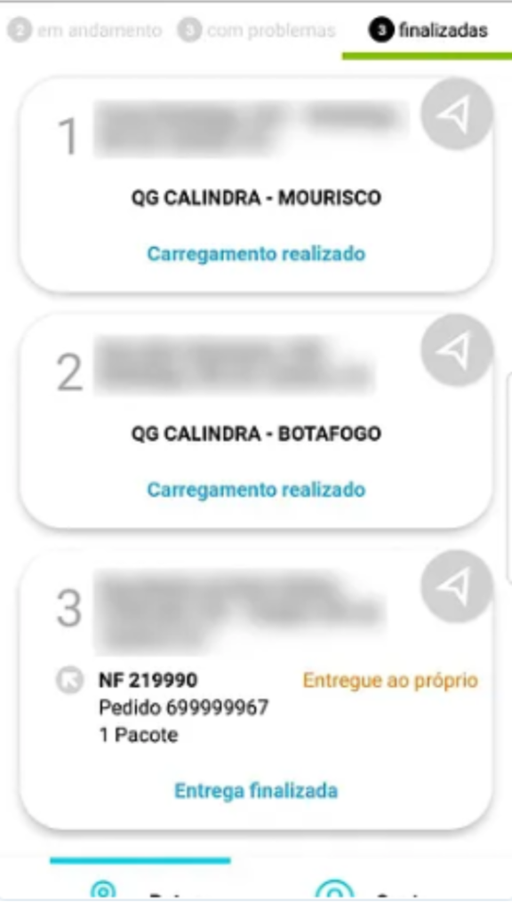 Finalizadas: são os pedidos que já foram carregados e/ou entregues.